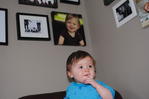 Riley likes to throw himself back, I think in hopes that he will flip completely backwards as he is his happiest when we are hanging him upside down! Once we start hanging him by his ankles we have to continue for much longer than we would like but it sure helps when he's fussy and nothing else will calm him down! These are the quirks I never want to forget :)