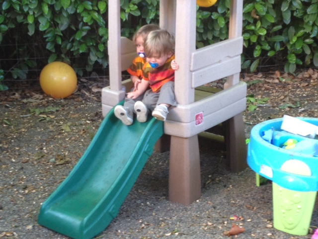 Riley wasn't moving fast enough so Evan took control of the slide! They are such stinkers these days. Later inside Evan took P's milk and then Payton went WWF on him. I was laughing hysterically (who doesn't root for the underdog?) but that proved to be a bad idea. All four boys then starting tackling each other and I had to stop laughing and bring out the mama bear voice :)